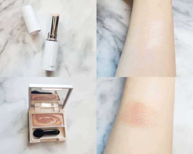 ▲ファンケル(上)「スティックイルミナイザー(限定品)」1種 ¥2,750(税込) (下)「マーブルトリックアイカラー(限定品)」限定2種(写真は60ミックスピンク) ¥2,530(税込)