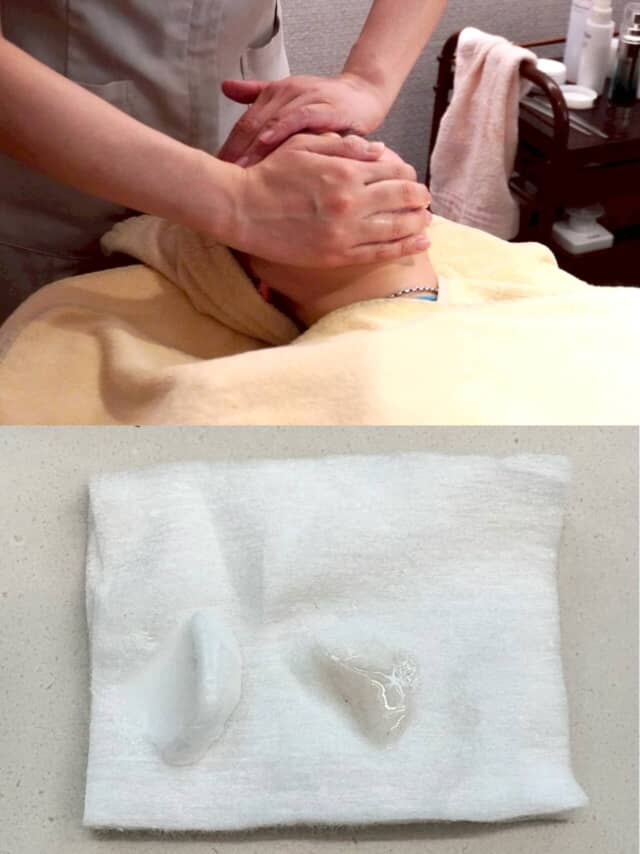 さらに東洋式トリートメントで巡りを促したあと、再度クレンジングを行うと、目に見える形で汚れが浮き上がる結果に。普段しっかり落としているつもりでも、落としきれていない汚れがあることを実感しました。