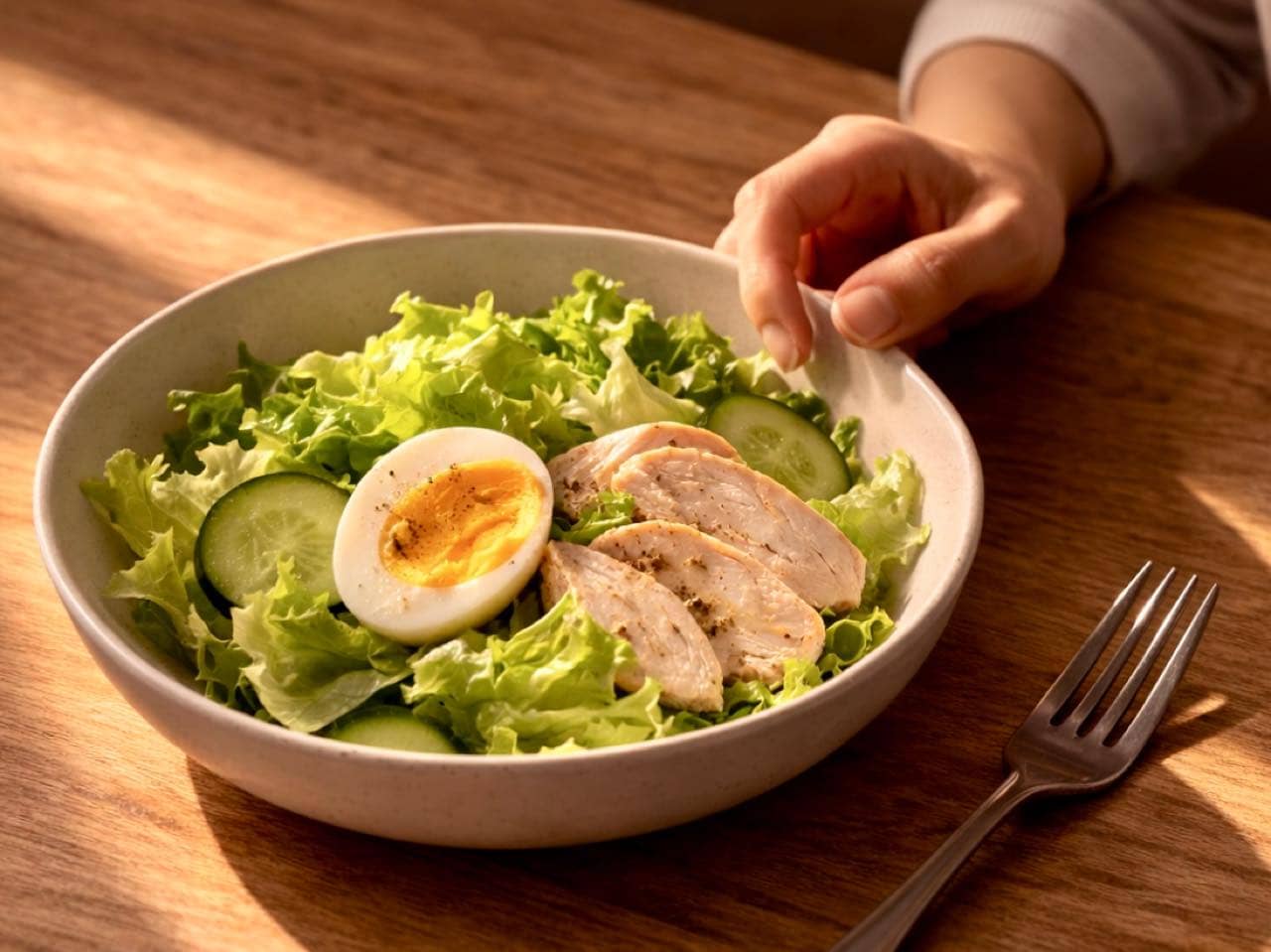 サラダをやめる必要はありません。むしろ、上手に活用すれば強い味方になります。意識したいのは「減らす」よりも「足す」視点。鶏むね肉やゆで卵、豆腐、ツナ、豆類などを組み合わせることで、タンパク質を確保しながら満足感も高まります。