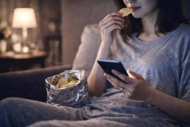 こうした食べ方は、「どれくらい食べたか」を意識しにくく、結果として食事や間食の回数が増えやすい傾向に。食べる量そのものよりも、“なぜ食べているか”が曖昧になりやすい点が特徴です。
