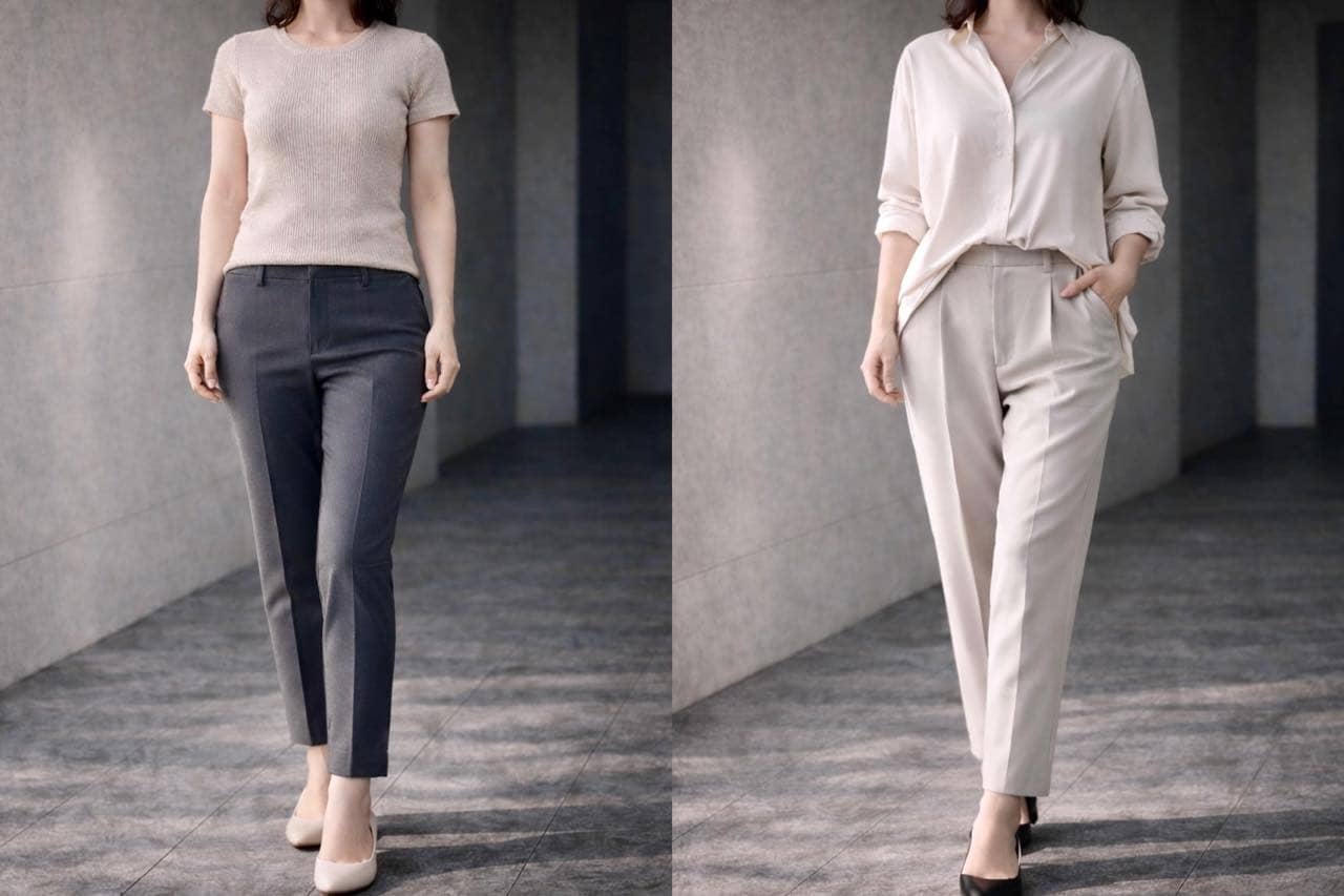 特にトップスもボトムスもフィットしている場合、動きや抜けが出にくく、結果として少し古さを感じさせてしまうことがあります。