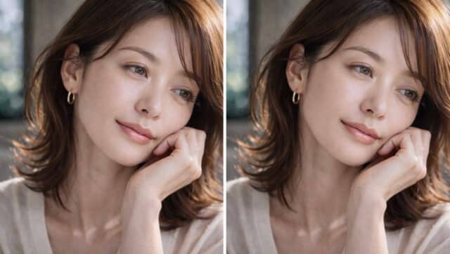▲なじみの違いは、色そのものより“肌とのつながり方”に表れます。左はやや浮いて見える印象、右は自然に肌になじんだ仕上がり。わずかな差でも顔全体の印象は大きく変わります