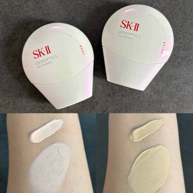 ▲SK-II ジェノプティクス CC プライマー(日焼け止め・美容クリーム) SPF50+・PA++++ ¥9,900(税込)※編集部調べ / (左)ロージーピンク、(右)ナチュラルベージュ