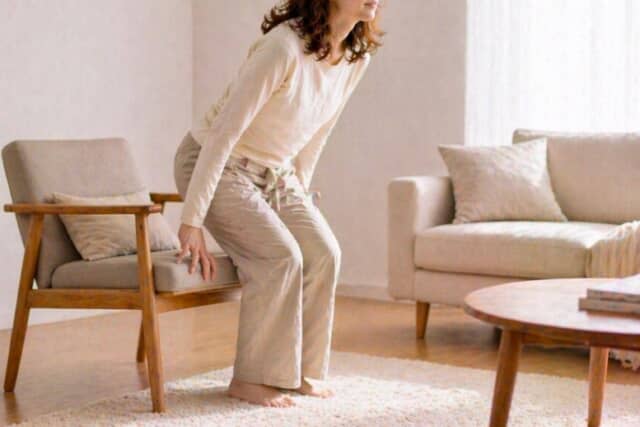 椅子やソファに座ったまま、かかとを床につけて、つま先をゆっくり上下運動しましょう。ふくらはぎを動かすことで巡りをサポートします。