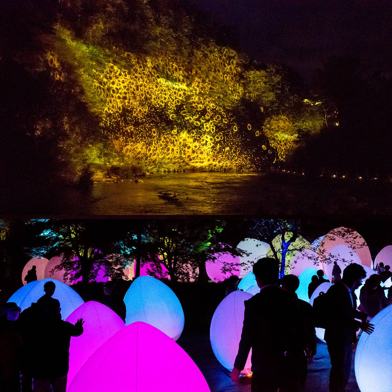 養老渓谷がある市原市と大多喜町には温泉旅館やホテル、グランピング施設、キャンプ場などもあるほか、車で1時間の範囲内に観光施設も多数あるので共に楽しめます。ぜひこの機会に森の中で繰り広げられる【チームラボ 養老渓谷】の光とサウンドの壮大な体験に没入してみてくださいね。<text&photo:湯川カオル子 チームラボ 養老渓谷 https://www.teamlab.art/jp/e/yorovalley/>