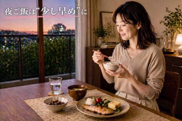 無理に食事量を減らすのではなく、タイミングを少し整えるだけでも体の反応は変わりやすくなります。ポイントは「できる範囲で続けること」。生活の中で取り入れやすい2つの工夫を意識してみてください。