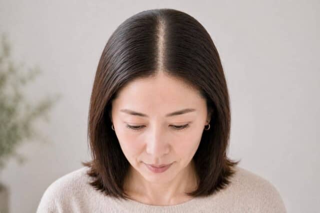 分け目をはっきり作ると、髪は整って見える一方で、トップがぺたっとしやすくなります。