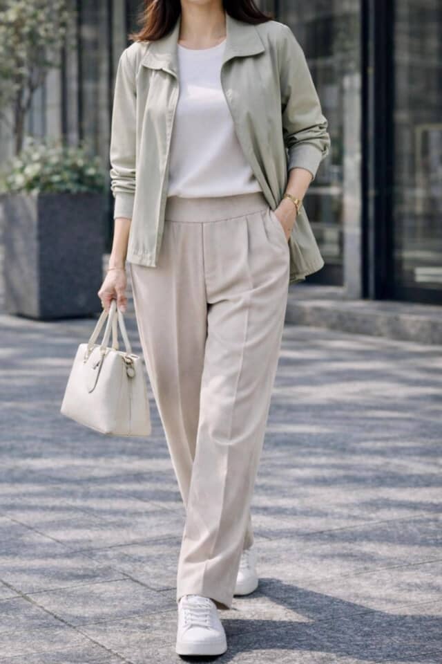 ▲スニーカー合わせは安心感がある一方で、コーデ全体がやや平坦に見えやすい