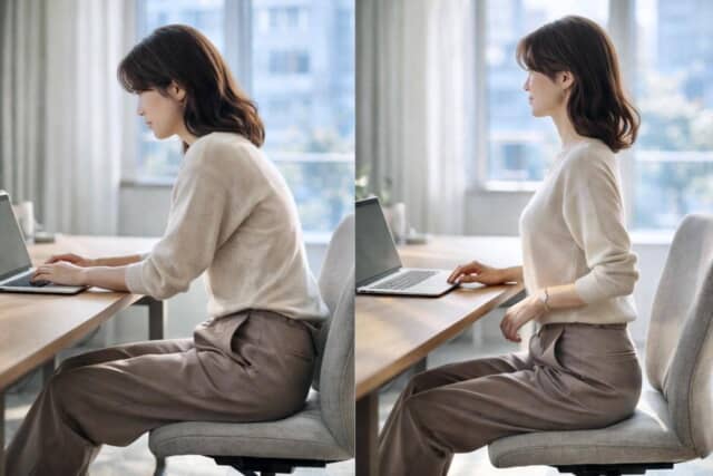 Cさんが始めたのは、特別なトレーニングではなく「姿勢に気づいたときに軽く整える」こと。「無理に胸を張るのではなく、頭の位置を少し上に引き上げるイメージにしたら、続けやすかったです。気づいたときに戻す、を繰り返していました」と振り返ります。