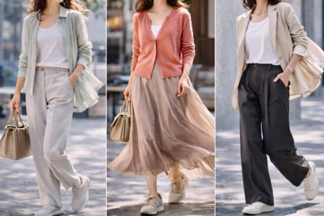 2026年春は、色で主張するよりも“なじませる”のが正解。スニーカーだけが視線を集める状態は、洗練とは逆方向に働きます。全体のトーンに溶け込むかどうかを基準に選ぶことがポイントです。