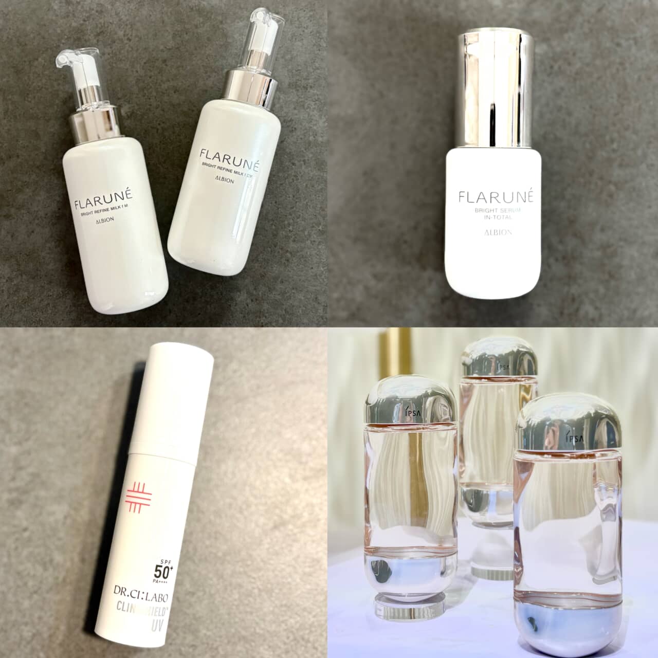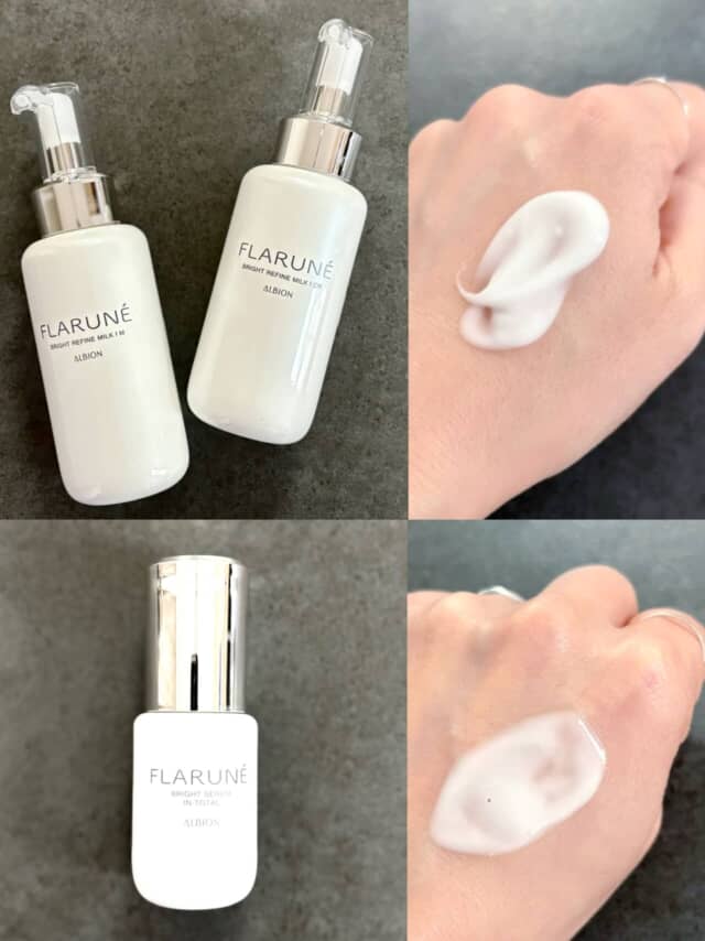 特に「フラルネ ブライトリファイン ミルク f」は、アルビオンの代名詞でもある先行乳液。洗顔後すぐに使うことで、肌をやわらげ、後に使う化粧水のなじみをスムーズにします。一方、「フラルネ ブライトセラム イン トータル」は、透明感ケアに加えて、うるおい・ハリ・ツヤまでトータルにアプローチ。透明感がありキメの整ったなめらかな肌へと導いてくれるのが特徴です。