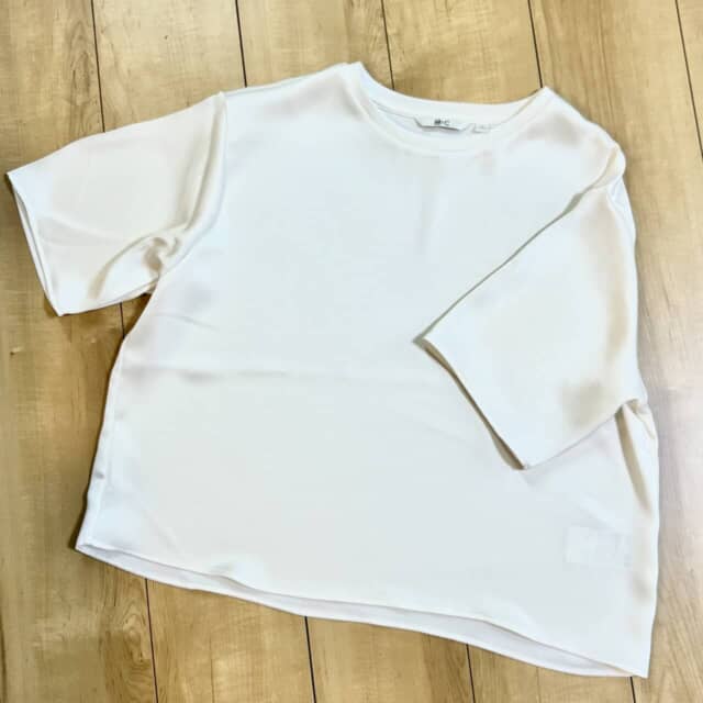 中でもおすすめが、【UNIQLO:C(ユニクロ シー)】の「サテンオーバーサイズショートブラウス」。軽やかでストレスフリーな着心地ながら、ほんのりとした光沢感が上品さをプラス。白Tの延長で着られるのに、コーデ全体の印象をさりげなく底上げしてくれます。