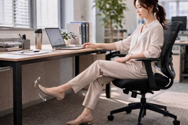 ▲デスクワーク中は座ったまま脚を軽く浮かせ、つま先をゆっくり動かしていたというAさん。無理なく下半身に刺激を入れていたそう